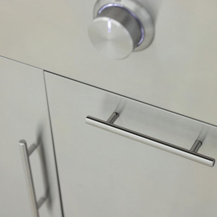 • Heavy-Duty Stainless Steel CartIncludes a roll-out propane tank holder, storage shelf, and soft-close doors.