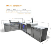 Mont Alpi MAi805-90KEGBEV 6-Burner Island with 90-Degree Corner, Kegerator & Beverage Center