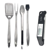 Humos Premium BBQ 4 Piece Stainless Steel Tool Set & Meat Thermometer Bundle