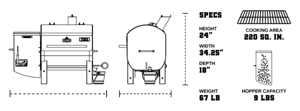 With the new GMG PRIME 2.0 App, controlling your grill is easier than ever. Enjoy WiFi smart control, AC + DC dual power versatility, and RACKT™ Technology for effortless grilling precision. Unlock endless culinary possibilities with features like wood-fired pizza oven capability, a temperature range of 150°-550°F, and a built-in meat probe for perfect results every time. Experience the future of pellet grilling with the TREK PRIME® 2.0 and ignite unforgettable flavor adventures wherever you go.
