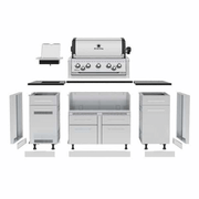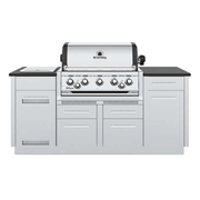 The Broil King® Imperial™ S 590i features 625 sq. in. of primary cooking surface and includes 5 stainless steel Dual-Tube™ burners, built-in oven lights, illuminated control knobs, 5 professional cast stainless steel cooking grids, stainless steel warming rack, stainless steel Flav-R-Wave™ cooking system, and electronic ignition. The S 590i features 304 stainless steel utility cabinet drawers with a tank holder (LP) and granite countertop.