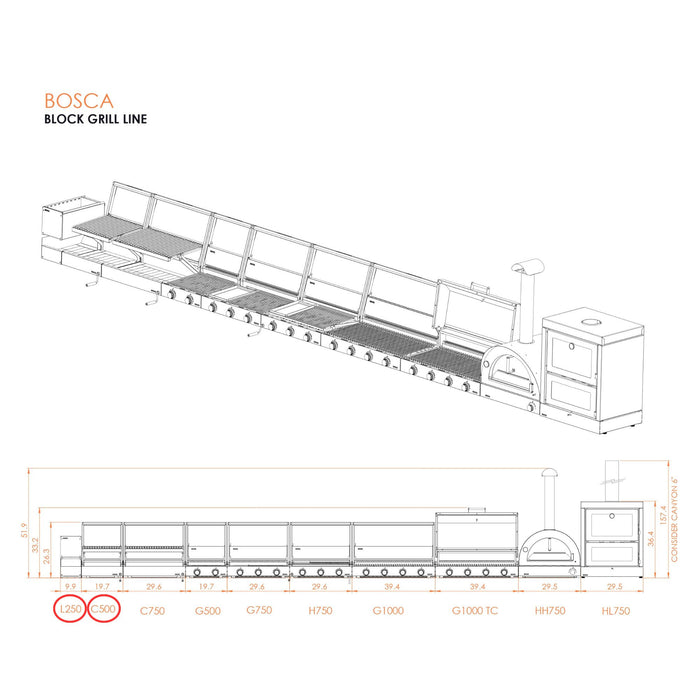 Bosca Block Wood Brazier 250 + Block 500 20" Built-in Charcoal Grill