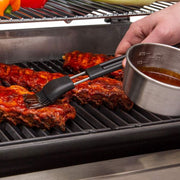A modern redesign of a grilling classic. The silicone basting brush and stainless basting bowl can be used on the grill surface or side burner to apply warm sauce to anything cooking on the grill. Silicone is heat resistant to 500°F. This set includes a 300ml / 1.25 cup bowl.