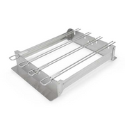Covering slightly more than one standard grid segment, this space saving kebab rack holds 4 dual prong skewers at a time, in two possible positions. Lay the skewers flat to keep them away from the heat or stand them vertically to get them close to, or on the grill surface. Easy to clean stainless steel. Set of 4 – 12-in / 30.5 cm skewers.