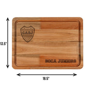 Showcase your love for football with the Regalando Pasion "Boca Juniors" Medium Wooden Cutting Board, expertly crafted from high-quality eucalyptus wood. This officially licensed product features the iconic Boca Juniors football club emblem, adding a touch of team spirit to your kitchen. With dimensions of 18.5 inches in length, 13.5 inches in width, and 0.8 inches in height, it provides ample space for all your culinary tasks.