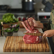 America's Test Kitchen winner since 2013, the Teakhaus 108 Rectangle Edge Grain Cutting Board XL is the last cutting board you'll ever need. With its generous size and professional-grade construction, this board is perfect for trimming large roasts or slicing long bunches of leafy greens. Designed with hand grips for easy handling and a juice canal on one side, this reversible board offers the versatility and durability every cook needs.