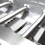 The Broil King® Crown™ 400 Series features 460 sq. in. primary cooking surface and includes a durable cast aluminum oven, 4 stainless steel Dual-Tube™ burners, stainless steel Flav-R-Wave™ cooking system, and electronic ignition. All Crown 400 series include heavy-duty 3-position cast iron cooking grids, black drop-down side shelves and enclosed black cabinet base.