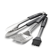 This set includes a stainless turner, tong, and silicone basting brush. Hard resin handles with the GrillPro logo, stainless blades.