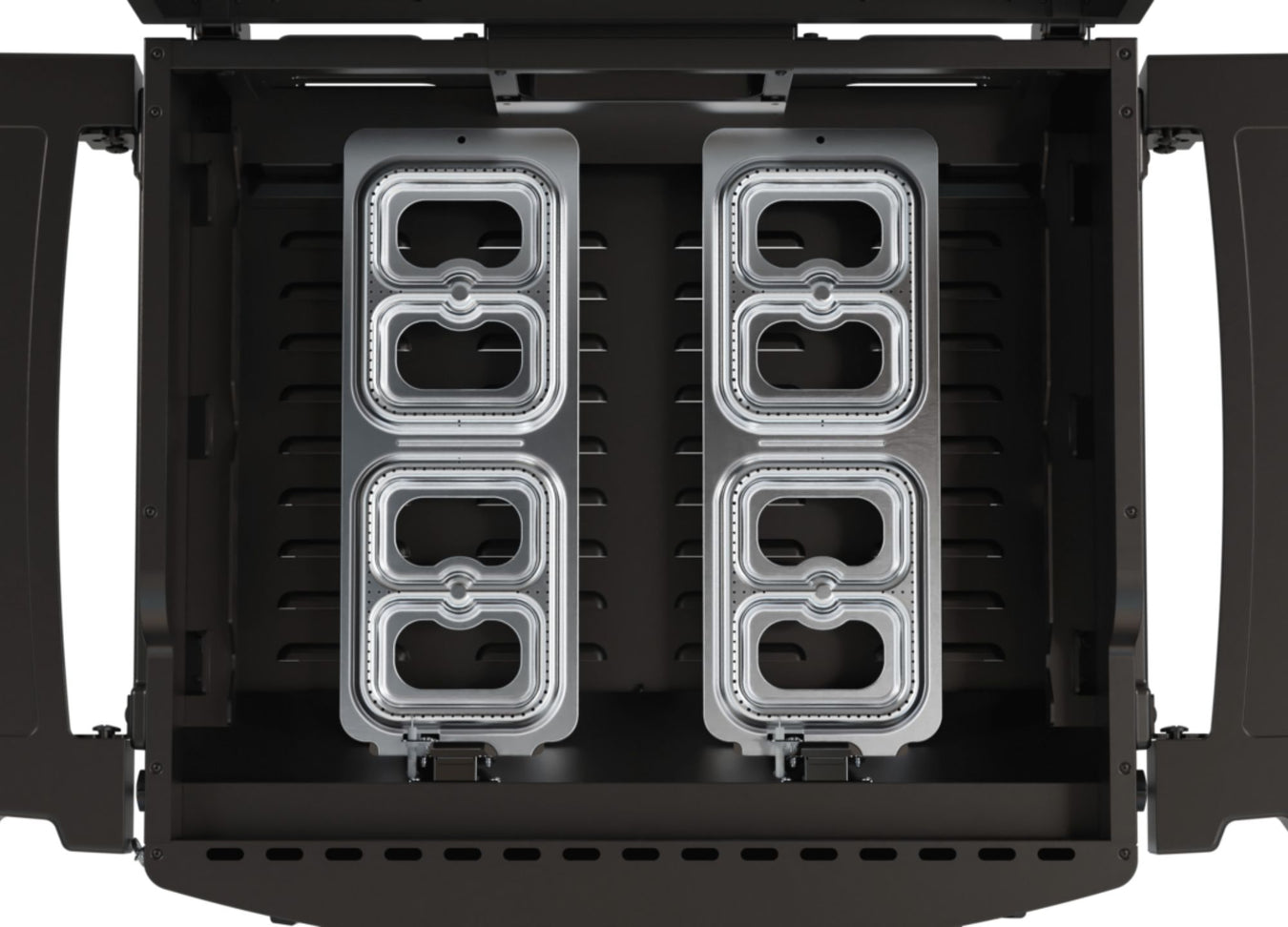 • Dual-Zone Burner System: Two burners with four temperature zones for precise heat control and flexibility. Choose front zones for smaller meals or all zones for wall-to-wall heat.
