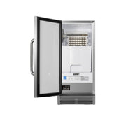 Summit's BIM47OS icemaker is a commercially approved and Energy Star certified solution for maintaining a continuous supply of clear ice in both indoor and outdoor kitchen spaces. Its robust construction features a complete stainless steel exterior, ensuring exceptional durability to withstand the rigors of outdoor elements. The front-breathing design allows for convenient built-in installation under counters, while the fully finished stainless steel cabinet enables freestanding use. With a sealed back for added outdoor protection and easier cleanup, the BIM47OS icemaker is designed for optimum performance in outdoor settings. The user-reversible stainless steel door includes a curved towel bar handle, providing a professional and stylish touch.