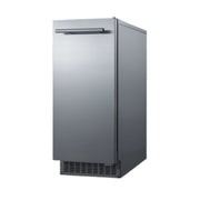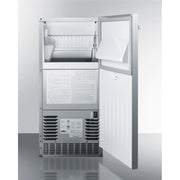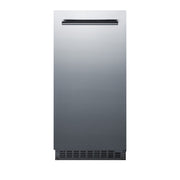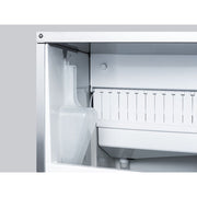 Summit's BIM68OSPUMP icemaker from the commercially listed BIM68OS series provides an attractive and robust solution for ensuring a continuous supply of clear ice in both indoor and outdoor locations. With a sleek 15" wide design, this icemaker boasts a complete 304 grade stainless steel exterior, ensuring exceptional durability and resilience against the elements. The user-reversible door features a powerful magnetic gasket for proper insulation and a horizontally mounted stainless steel handle, adding a modern touch to the overall appearance. The front-breathing design allows for convenient built-in installation under counters, while the fully finished stainless steel cabinet also permits freestanding use. The internal pump offers greater flexibility in unit placement, and the sealed back provides additional protection and simplifies outdoor cleanup.
