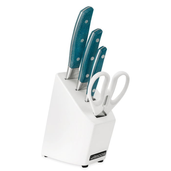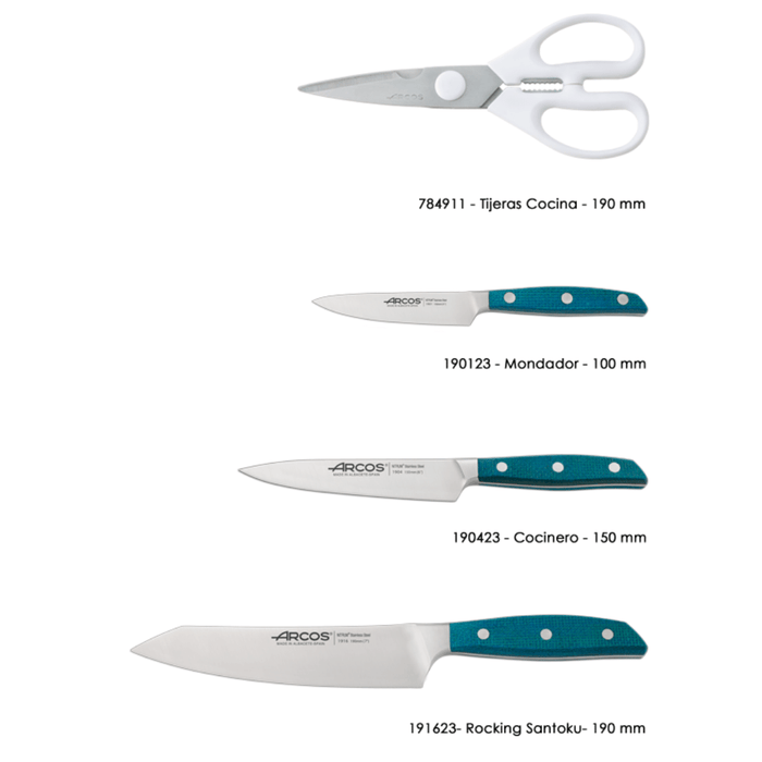 Introducing the Brooklyn series knives, known for their exceptional silk edge that delivers a truly unique cutting experience. Crafted with precision, these knives feature NITRUM stainless steel blades, renowned for enhanced cutting power, hardness, and durability. These forged knives are meticulously shaped from a single piece of steel, ensuring solidity. Their distinctive Micarta handles, crafted from resin-compressed cloth, boast an ergonomic design and a half ferrule for effortless cutting and sharpening. The rounded bolster adds safety and comfort, and the captivating bluish tones set them apart. With stainless steel rivets for a secure, corrosion-free handle, these knives are easy to maintain, backed by Arcos' 10-year warranty. Don't miss the 8'' kitchen scissors from the Prochef series, featuring stainless steel construction and polypropylene handles for versatile culinary use.