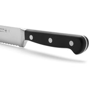 Long and sturdy knife, with a serrated blade. Serrated edge that cuts effortlessly through bread.