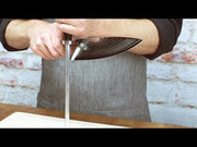 With each use of your knife, the razor-sharp edge naturally bends over just a tiny bit. The edge is still sharp, but the sharpest part isn't making contact with the food. The answer is honing with the Shun Kanso Combination Honing Steel. It gently realigns the edge of the blade, prolonging the knife's sharpness. The Shun Kanso Combination Honing Steel has two surfaces: a smooth one for weekly honing, and a micro-ribbed one for monthly honing. How often you hone depends on your usage, of course.