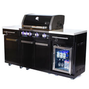 Upgrade your outdoor cooking experience with the Mont Alpi MA-957FC Compact Island with an integrated drinks fridge, a versatile and stylish addition to your outdoor living space. This compact island is the perfect combination of functionality and elegance, offering a four-burner grill with a ceramic infrared rear burner, white granite surfaces, and a built-in outdoor refrigerator.