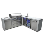 Mont Alpi MAi805-D90BEV 6-Burner Deluxe Outdoor Kitchen Island with 90-Degree Corner & Beverage Center