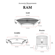 Boldly modern yet deeply rooted in Argentine tradition, the Fogues TX Ram 120 Open Fire Grill is a premium standing charcoal grill built for serious outdoor cooking. With a wide 45.27-inch diameter and a functional 23.6-inch height, this grill delivers ample space and exceptional control for asado-style grilling. Crafted from heavy-duty iron and featuring a rustic rusted finish on the ring and legs, itβs designed to be both durable and visually striking. Weighing 169.7 lbs., it offers the perfect balance of stability and mobility for your outdoor space.