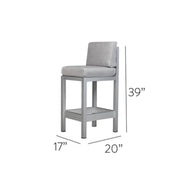 Enjoy in style with the Andes stool with backrest. Crafted from anodized aluminum structures, this luxuriously comfortable seat features a super-soft, high-density foam cushion that is maintenance-free, rustproof, water-resistant, mold-repellent, UV-ray, and fade-resistant. Protected by premium Sunbrella marine fabrics, this stool offers a sophisticated seating solution for your bar table that can be customized with different color options. Request a quote to learn about these options.