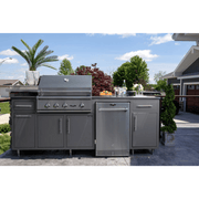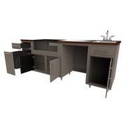 Challenger Designs Coastal 90.125 WGRS Powder Coated Aluminium Kitchen Island for 32 Inch Gas Grill with Refrigerator Opening and Sink Base