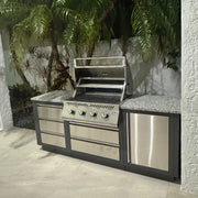 Upgrade your backyard into a fully functional, stylish outdoor kitchen with the Napoleon Oasis 100 Outdoor Kitchen Island, complete with a built-in 500 Series 32-Inch Gas Grill and a sleek Valet Gray Granite Countertop. Designed for compact spaces without compromising on performance, this modular island kit offers smart storage, high-end finishes, and pro-level grilling power. Featuring durable stainless steel doors and powder-coated galvanneal steel cabinetry, it’s built to stand up to the elements while adding a refined look to your outdoor space.