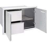 Discover unparalleled storage elegance with the Lynx Ventana Collection, presenting the Lynx Ventana 36-Inch Wide Dry Pantry (LPA36-4). Designed for the outdoor kitchen, this sleek and contemporary dry pantry delivers the finest storage solutions. Boasting a magnetic seal to keep out dust, dirt, and pests, and featuring fully illuminated drawers with full extension glides, this pantry ensures the utmost protection for your foods and cookware. The adjustable wire shelf on the open side adds versatility, while the sealed framing prevents dust and water ingress, making cleaning a breeze. Elevate your outdoor culinary experience with this sophisticated and functional dry pantry.
