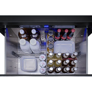 Summit introduces the SPR3032D, a 30" wide 2-drawer built-in undercounter all-refrigerator designed to elevate your indoor or outdoor kitchen experience. With panel-ready fully finished stainless steel drawer fronts, this refrigerator offers a seamless blend into any setting. Its stainless steel drawer construction ensures durability and a stunning look, complemented by the included pro style handles. The versatile front-breathing design allows for both built-in and freestanding installation, while the fully finished black cabinet adds to its appeal. With a spacious 5.42 cu.ft. interior capacity, the SPR3032D provides ample storage for a variety of items. The removable dividers in each drawer allow for customizable organization, while the digital control panel enables easy temperature adjustment and can be switched between Fahrenheit and Celsius.