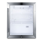 Summit Commercial's SPR314LOS is a commercially approved outdoor countertop beverage cooler, perfect for displaying and refrigerating beverages or sealed food items in various outdoor foodservice settings. Designed for freestanding use on top of counters, this compact beverage merchandiser is ETL-S listed to NSF-7 standards and meets UL-471, ensuring safe operation in outdoor spaces. The unit features a weatherproof design, making it resistant to the elements. Its reversible stainless steel trimmed double pane tempered glass door comes with a pro style handle and a front lock, providing added security. The door's user-reversible feature allows for flexible installation, and the jet black cabinet finish and sealed back offer additional protection.