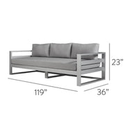 This Pampa sofa is an excellent addition to your outdoor space. Stylish, minimalist, and European design paired with the finest materials to ensure a comfortable design piece for years to come. With anodized aluminum structures, Sunbrella marine fabrics, and high-density super-soft foam, our sofas are maintenance-free, rustproof, water-resistant, mold-repellent, UV-ray, and fade-resistant.