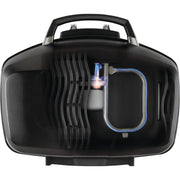 Napoleon's TravelQ™ PRO285 Portable Propane Gas Grill with scissor cart can grill up to 20 hamburgers at once on the 285 square inches of cooking area. The stylish all-black finish with chrome details will match any outdoor decor. The cast aluminum, high-topped lid design lets you take portable grilling to the gourmet level. Roast whole chickens or turkeys, pork and even prime rib; this little grill can do it. Using the dual stainless steel burners, you have precise control over the temperature, just like on Napoleon's full sized grills. High heat searing is a snap and you'll know it's a Napoleon with the iconic WAVE™ cooking grids for those distinctive sear marks. This grill has everything you need for perfect portable grilling anywhere, the nimble cart features all-terrain wheels, easy folding, setup, compact storage, and propane tank straps. This grill is perfect for any adventure. You can't beat this professional grill in a portable package.