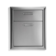 Experience the pinnacle of outdoor kitchen storage with the Lynx Ventana 19-Inch Wide Double Drawer - LDW19-4. Part of the Ventana Collection, this storage solution combines a sleek, contemporary design with practical features for an unparalleled outdoor culinary experience. These double drawers, each measuring 15 inches wide and 24 inches deep, provide ample space for oversized tools and accessories, ensuring a clutter-free outdoor kitchen. The commercial stainless steel rollers with soft-close slides deliver smooth operation and prevent slamming, prioritizing safety for users, especially little fingers. Sealed framing protects against dust and water, simplifying cleaning and maintenance, while optional door accessory kits enhance organization.