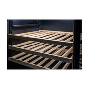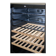 - Sleek beverage center easily transforms into a wine fridge with added beech shelving