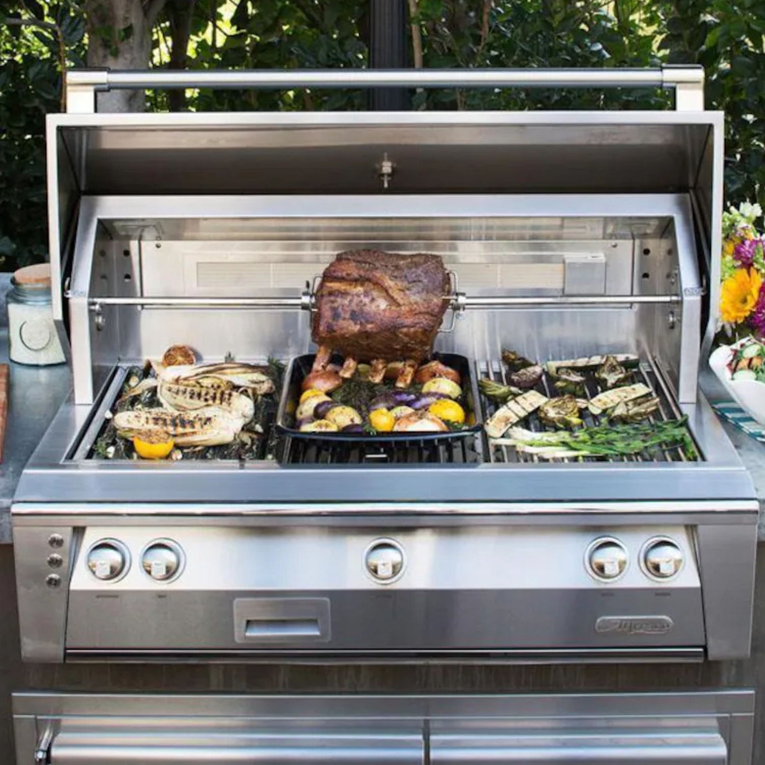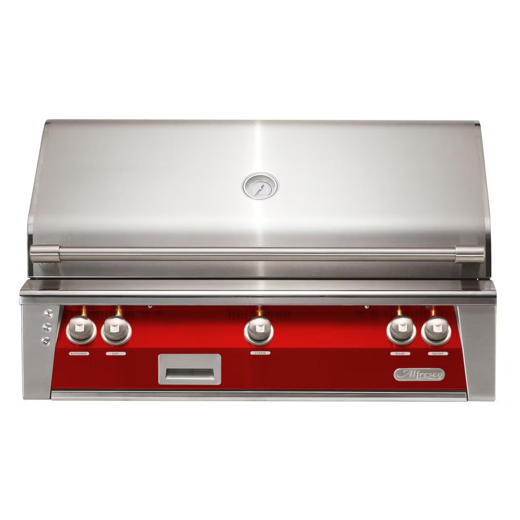 Alfresco 42-Inch Built-in Stainless Steel Gas Grill w/ Rotisserie & Sear Zone in Raspberry Red