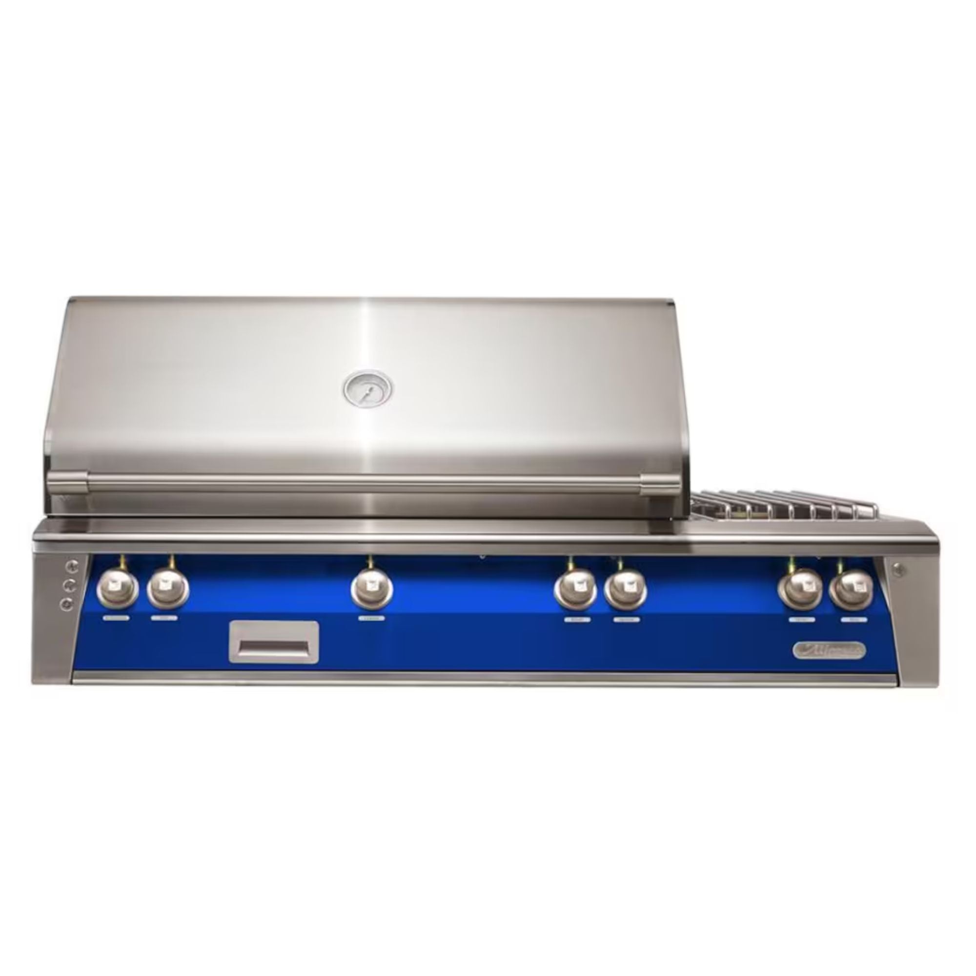 Alfresco 56-Inch Deluxe Built-in Stainless Steel Gas Grill w/ Rotisserie & Side Burner in Raspberry Red