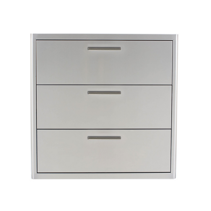 This Blaze Triple Access Drawer feature ambient lighting, clean design elements and quality construction using commercial grade 304 stainless steel that can stand up to the outdoor elements. Accented with modern handles and a unique, completely rounded bevel design, this drawer provides that quality touch to your outdoor kitchen or BBQ island. Blaze storage drawers are the perfect outdoor storage solution!