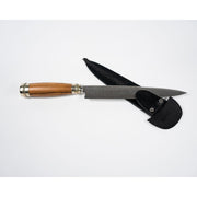 The El Cedro Nickel Silver Wood Knife represents the pinnacle of artisanal craftsmanship, meticulously fashioned by highly skilled Argentinean artisans. Each knife in this exceptional collection showcases a handle crafted from rich, natural wood, elegantly complemented by a nickel silver frame. The blade is expertly forged from 420 stainless steel and is accompanied by a protective sheath. Whether you seek a functional tool for outdoor adventures or a collector's piece of unparalleled beauty, this knife seamlessly combines form and function.