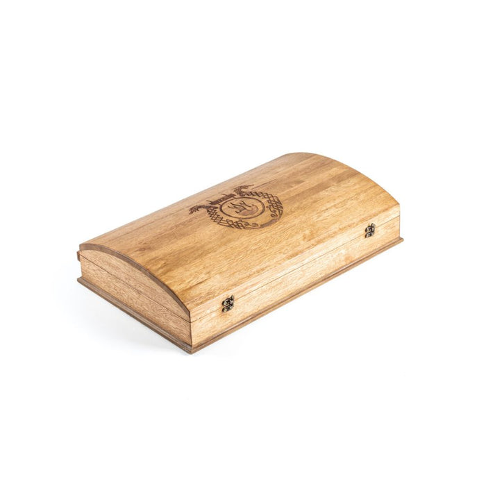 This beautiful set comes in a handmade box made of Cedar wood. The blades of the knives and forks are made of stainless steel, and the handles are made of Guayubira wood with a ferrule and pommel made of nickel silver.