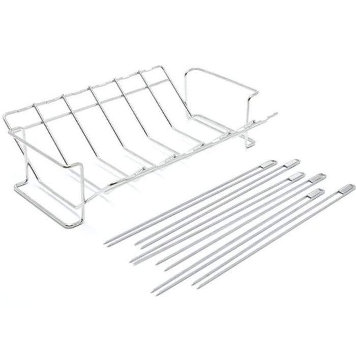 Broil King 64233 Stainless Steel Multi-Rack Skewer Kit offers a premium accessory for use with your grill. This multi-rack kit features a stainless roasting and rib rack and six stainless double pronged skewers to enhance your cooking experience. This kit can hold up to six racks of ribs, as well--it's the perfect roast, poultry, and kebab rack!