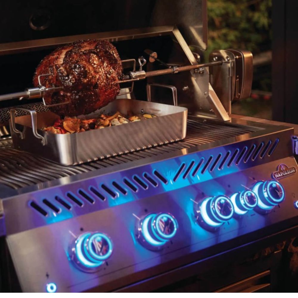and comes with a commercial grade rotisserie kit for perfect spit roasted meals.
