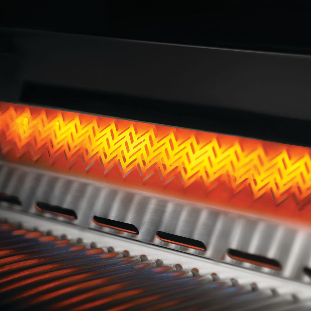 • Dual level, stainless steel sear plates catch and vaporize any food drippings, protecting the stainless steel tube burners from damage and keeping your barbecue cleaner