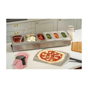 The two 1.6L and four 0.8L Ooni Pizza Topping containers ensure you have plenty of toppings to keep the pizza flowing. The custom-fit clear lids for each container means they can be easily stacked and stored in the fridge. The weather-resistant, powder-coated frame and stainless steel cover fit perfectly on our Ooni Modular Tables and it is easy to transport for cleaning and storage. Build your outdoor kitchen and level-up your pizza prep with the Ooni Pizza Topping Station.