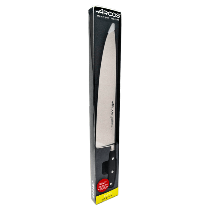 Chef’s knife with a forged 12'' blade from a single piece. It’s made with NITRUM® stainless steel, exclusively found in ARCOS knives.